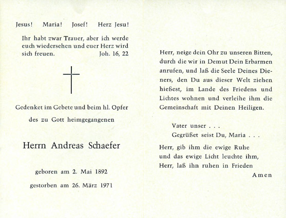 Andreas Schäfer * 2. Mai 1892 + 26. März 1971