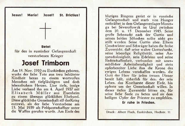 Josef Trimborn * 18. November 1910 + 10./15. Dezember 1945