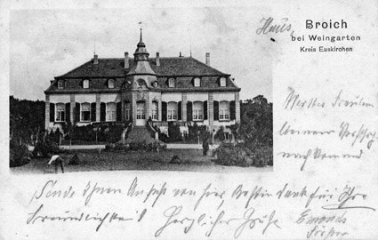 Hier auf der Karte ist das Haus vor der Zerstörung, durch einen Bombenangriff zu sehen. Karte von 1905