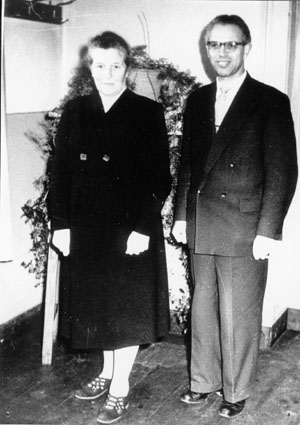 1954 - Gratulation durch Fritz Müller, rechts sitzend Pfarrer Wammers |